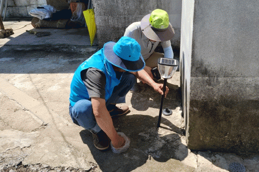 태양광 정원등은 주택 입구, 마당 등에 가로등 시설이 없어 야간 보행 시 불편함과 낙상 사고 위험이 있는 홀몸 노인·장애인 등 취약계층 25가구에 2대씩 설치됐다.