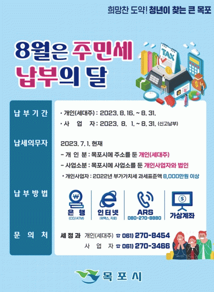 시는 주민세가 시민들의 복지 증진을 위해 사용되는 자주재원으로 납부기한 내에 자진납부해 줄 것을 당부했다.