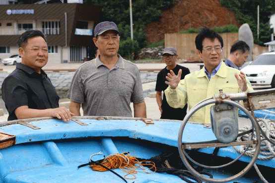 현장에서 전 현직 어촌계장들과 주민들을 만나 피해 상황을 물었고 다행히 만일의 사태에 대비해 어선을 피항시켰다는 설명과 함께 평소 건의 사항에 대해서도 의견을 교환했다.