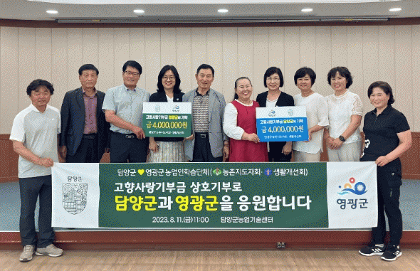 담양군은 11일 담양군농업기술센터에서 담양군과 영광군 농업인학습단체의 고향사랑기부금 상호 기탁식을 진행했다고 밝혔다.