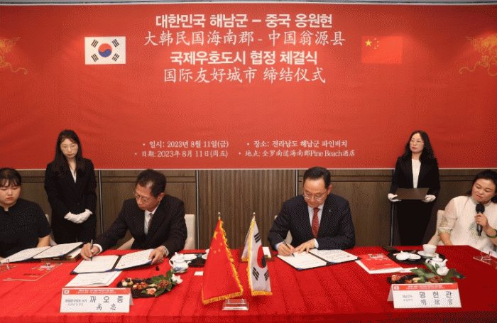 협약에 따라 해남군과 옹원현은 장기적인 우호협력관계를 수립하고, 상호방문 및 교류시스템의 구축, 산업과 문화, 관광, 스포츠, 교육, 행정 등 다양한 분야에서 협력을 촉진해 나가기로 했다.