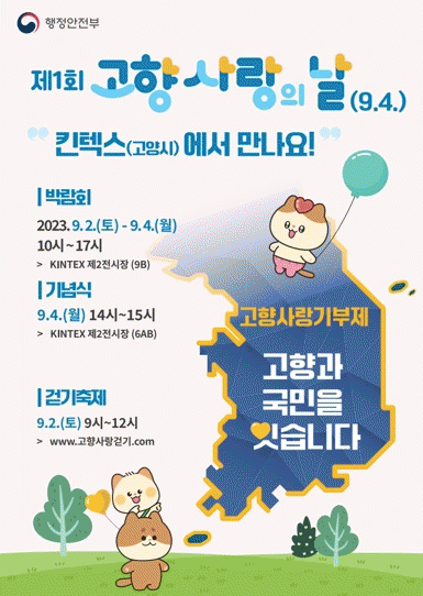 ‘고향사랑의 날’은 올해 제도 시행에 맞춰 국가기념일로 지정됐으며, 기념식은 9월 4일 오후 2시 일산 킨텍스 제2전시장에서 개최된다.