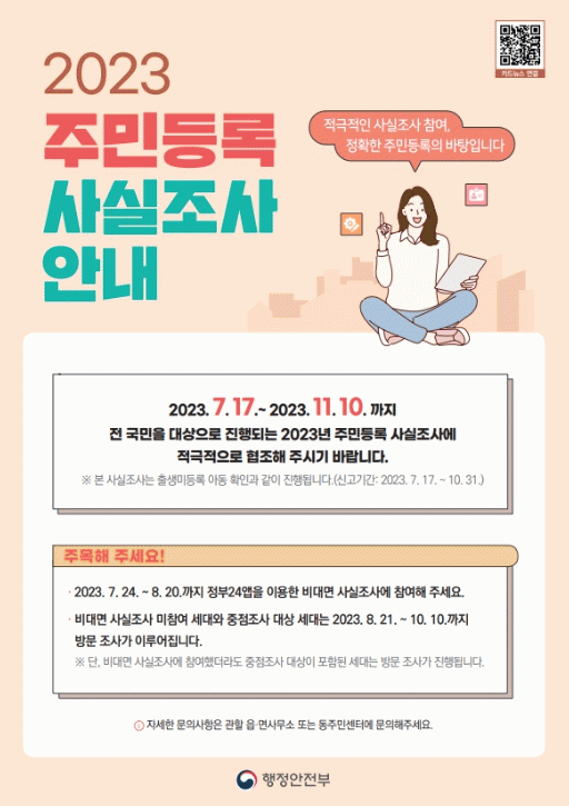 주민등록 사실조사는 매년 1회 이상 전 국민을 대상으로 주민등록지와 실거주지 일치 여부를 조사하는 것으로, 이번 사실조사는 출생미등록 아동 신고기간도 함께 운영한다.