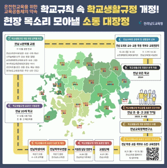 전남교육청은 TF가 개발 추진 중인 ‘학교생활규정 표준안’ 초안에 교육공동체의 의견을 반영하기 위해 21일 온라인 의견 수렴을 시작으로 소통 대장정을 두 달여 간 진행한다고 밝혔다.