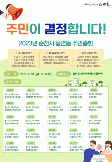 노관규 순천시장은 “품격 높은 주민의 참여가 마을의 긍정적인 변화를 만들고 지역의 발전으로 연결된다”라며 “마을의 주인으로서 내년도 마을계획을 결정하는 주민총회에 많은 관심과 참여를 바란다”라고 말했다.