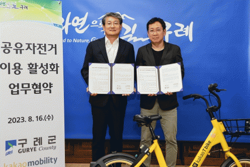 이번 협약을 통해 구례군과 ㈜카카오모빌리티는 올해 9월부터 일반형 공유자전거 200대로 카카오T바이크 서비스를 제공할 계획이다.