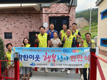 ‘우리마을, 착한이웃 행복천사’는 일정금액 이상을 정기적으로 기부하며 이웃사랑을 실천하는 기업(단체)으로 ‘소라면 행복천사’ 현판을 부여해 기업의 이미지를 제고하고 지역사회의 나눔문화 확산에 기여하고 있다.