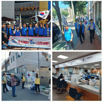 우선 8일과 9일에 주민자치회와 여수 르네상스 시민운동 실천본부 위원, 통장, 새마을부녀회 등 자생단체 회원과 주민들이 대거 참여, 광복절 나라사랑 태극기 달기 거리 캠페인을 펼쳤다.