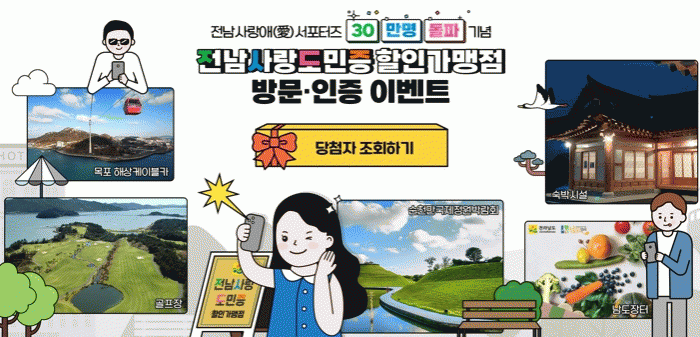 이벤트는 서포터즈 가입 30만 명 돌파를 기념, 지난 7월 13일까지 60일간 전남 관광 및 방문을 유도하고 지역 농수축산물 유통 활성화 등을 위해 진행됐다.