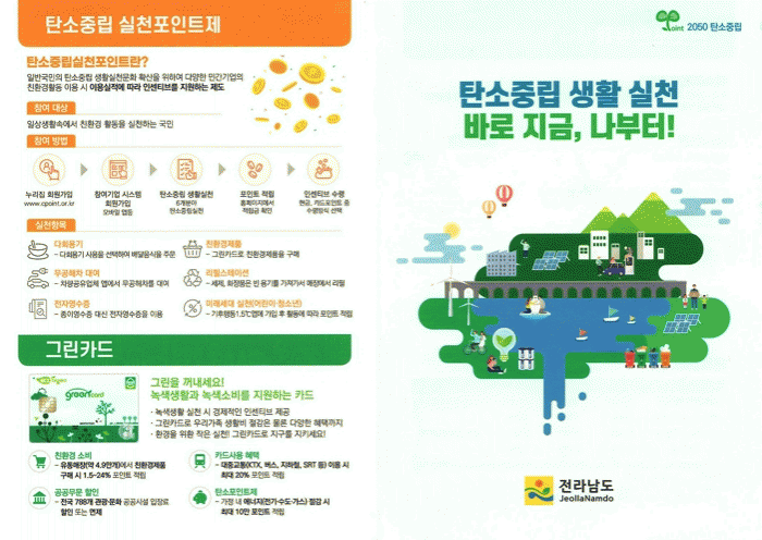 안상현 전남도 환경산림국장은 “2050 탄소중립을 위해서는 가정과 상업 등 일상생활에서 저탄소 생활 실천 의지가 무엇보다 중요하다”며 “온실가스도 감축하고 경제적인 혜택도 받을 수 있는 탄소중립포인트제에 더 많은 도민이 가입하길 바란다”고 당부했다.