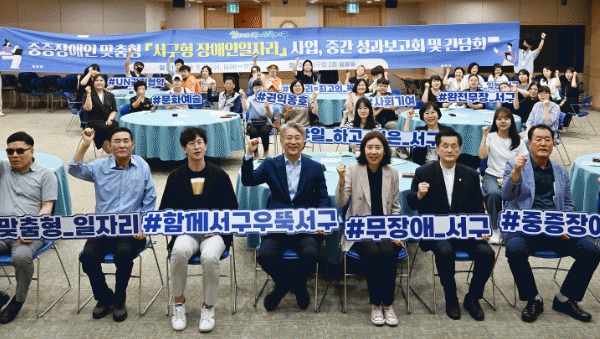 서구는 지난 16일 서구청 들불홀에서 장애인 근로자와 가족, 전담인력 등 50여 명이 참석한 가운데 ‘서구형 장애인 일자리 사업 중간성과 보고회’를 개최했다.