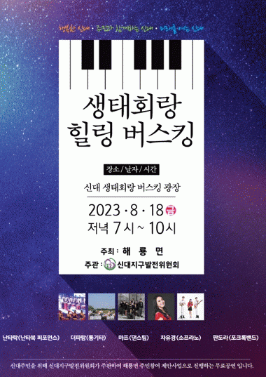 한편 이번 버스킹 공연은 신대지구발전위원회(위원장 허주범)가 주관하여 해룡면 주민 참여 제안사업으로 주민들에게 문화를 즐기고 서로 소통하는 기회를 마련하기 위해 기획됐다.