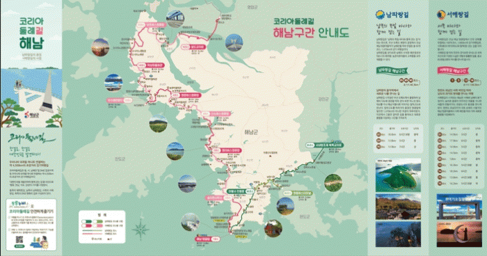 특히 해남은 송지면 땅끝마을의 땅끝탑에서 서해랑길이 시작되고, 남파랑길이 끝나면서 코리아 둘레길의 가장 중요한 거점으로 꼽힌다.