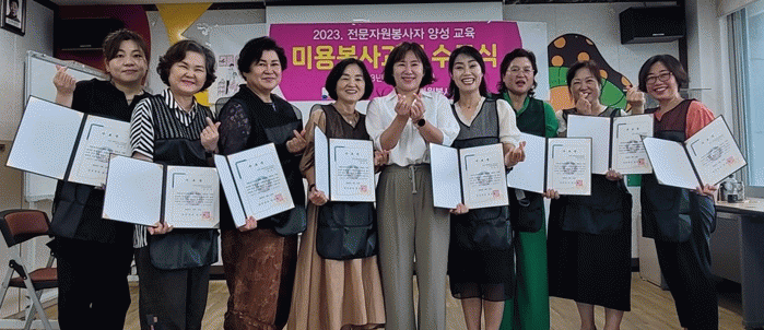 이번 전문자원봉사자 양성교육은 지난 6월 16일 시작해 주 2회, 50시간의 이·미용에 전문 교육을 통해 자원봉사 서비스의 질을 한층 향상할 수 있는 계기가 됐다.