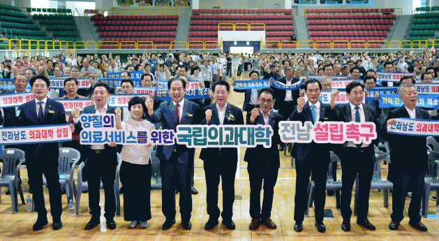 또한 노령인구 비중이 높고 농어촌 산간지역 등 의료 취약지인 전남의 국립 의과대학 설립을 촉구하는 구호 제창과 팻말 퍼포먼스도 진행해 의미를 더했다.