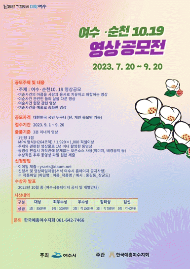 이번 공모전은 ▲여순사건의 아픔을 사랑과 용서로 치유하고 화합하는 영상 ▲여순사건을 예술로 승화한 영상 등을 주제로, 전 국민 누구나 참여할 수 있다.