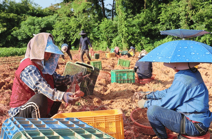 올해는 긴 장마로 수확이 다소 늦어진 편으로, 8월 초부터 밤고구마인 진율미 품종이 주로 출하되고 있다.