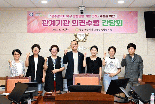 광주여성민우회, 광주전남여성단체연합 등의 관계기관과 북구청 주무부서인 여성보육과가 참석한 이번 간담회는 올해 말로 만기가 도래하는 ‘북구 양성평등기금’의 존속기한 연장을 위한 조례 개정이 필요한 시점에서 관계기관의 의견을 반영하여 조례를 개정함으로써, 차후 북구의 적극적인 성평등정책 추진을 위한 초석을 만들기 위해 마련됐다.
