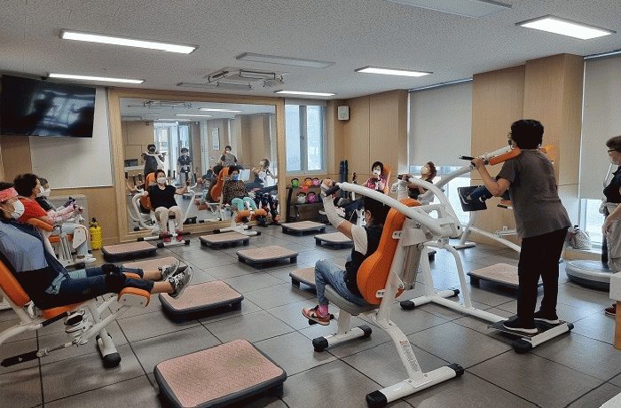 운동 처방사와 함께 같은 종류의 운동기구를 같은 방식으로 강도 높게 사용하면서 건강 증진을 도모한다.