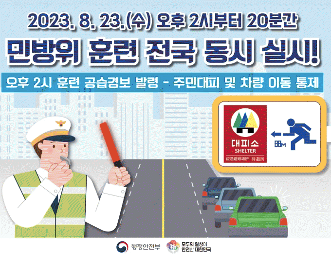 훈련 공습경보가 발령되면 주민은 안내요원의 유도에 따라 즉시 가까운 민방위대피소로 이동해야 한다.
