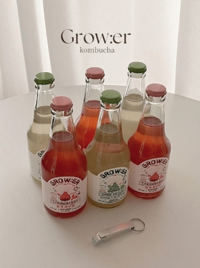 최근에는 농업기술센터의 소규모 창업기술 지원사업을 통해 직접 재배한 샤인머스켓과 지역특산물인 딸기를 활용하여 발효음료(콤부차) 2종을 개발했다.