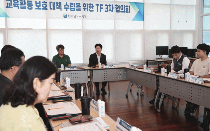 전라남도교육청은 최근 서울에서 발생한 초등학교 교사 극단적 선택 사건과 관련, 지난 8일부터 교육공동체와 함께 교육활동 보호 대책 수립을 위한 TF를 운영했다. TF에는 전교조전남지부, 전남교사노조, 전남교총, 전남실천교사모임 등 교원 4단체와 전남도의회, 학부모단체, 도교육청, 교육지원청 관계자가 참여했다.