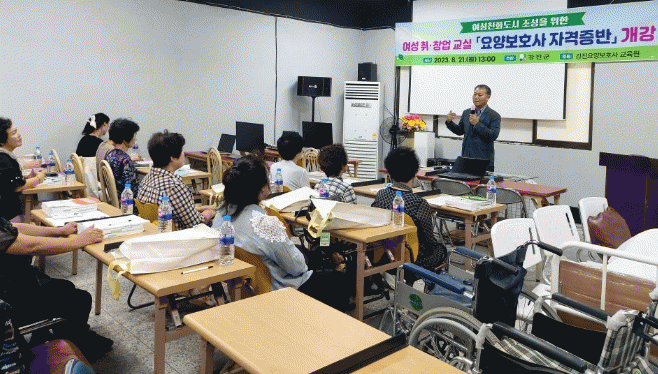 강진군에서 출산·육아·가족 구성원의 돌봄 등으로 경력이 단절된 여성의 직업능력 개발 및 경제활동 촉진을 위해 자격증반 과정 개설을 위한 수요 조사를 실시, 심의를 통해 요양보호사 자격증반이 선정돼 개설했다.