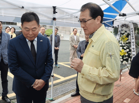 김산 군수는 이날 헌화·묵념을 한 후 방명록에 “공교육 정상화가 이뤄지길 바란다”고 적었다.