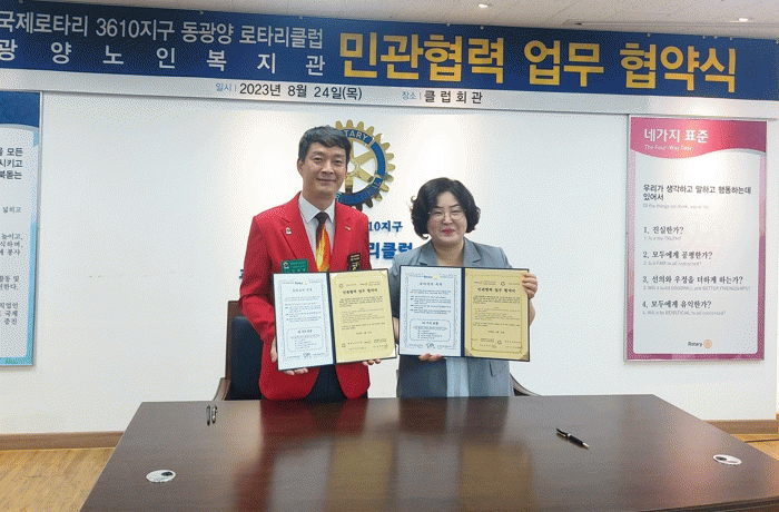 이번 협약은 일상생활이 어려운 어르신들에게 눈높이 복지서비스를 제공하기 위해 마련됐다. 협약을 통해 동광양로타리클럽은 어르신들의 건강하고 따뜻한 노후 생활을 위해 다양한 방면에서 봉사 활동을 펼칠 예정이다.