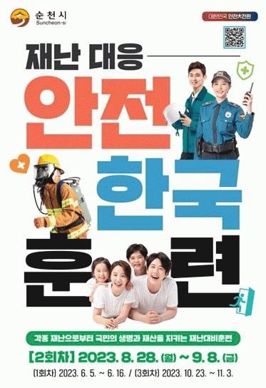 8일에는 순천문화예술회관에서 순천시, 순천경찰서, 순천소방서 등 11개 기관과 시민이 함께 참여하는 실전 대응훈련이 진행되고, 동시에 순천시 재난안전상황실에서는 재난상황에 대한 상황판단회의와 노관규 시장 주재하에 재난안전대책본부가 꾸려져 토론훈련이 실시된다.