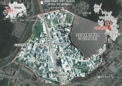 무안군은 2023년 하반기 국토교통부 공모에 대비하여 지역의 고유자산을 활용한 거점 조성 및 상권 활성화를 위한 지역특화 도시재생사업을 추진하고자 ‘청계면 도시재생 활성화계획’을 수립하고 있다.