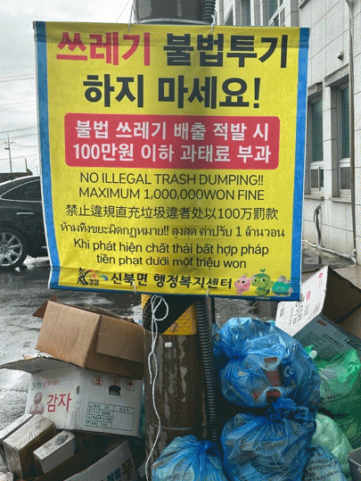 신북면은 영어·중국어·태국어·베트남어로 쓰인 현수막을 제작해 외국인주민이 절차와 방법을 몰라 쓰레기를 불법투기 하지 않도록 했다.