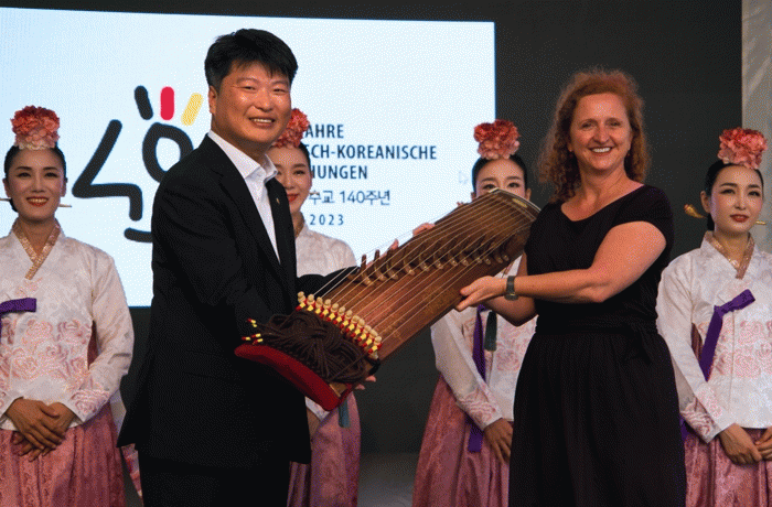 박창환 부지사는 남도예술의 세계화를 기념해 프랑크푸르트 시측에 가야금을 전달했다. 이에 엘케 포이틀(Elke Voitl) 프랑크푸르트 부시장은 “기증받은 가야금이 향후 두 지역의 문화예술 교류를 촉진하는 시금석이 될 것”이라고 화답했다.