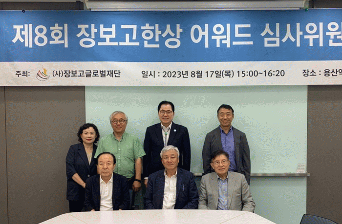 장보고글로벌재단(이사장 김덕룡)에 따르면 지난 8월 17일 용산역 코레일 회의실에서 심사위원회의를 갖고 제8회 장보고한상 어워드 수상자 6명과 특별 공로상 수상자 1명 등 7명을 선정했다고 밝혔다.