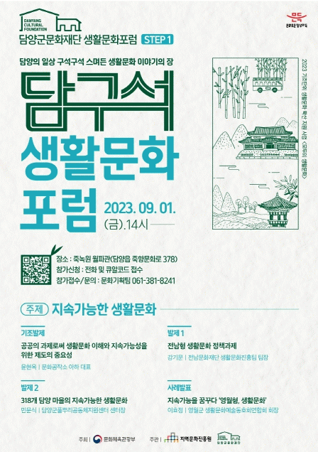 이번 생활문화포럼은 공공의 제도 및 역할과 민간 공동체의 성공사례를 공유하고 담양지역 생활문화의 지속가능성과 발전방향에 대해 논의하는 장이 될 예정이다.