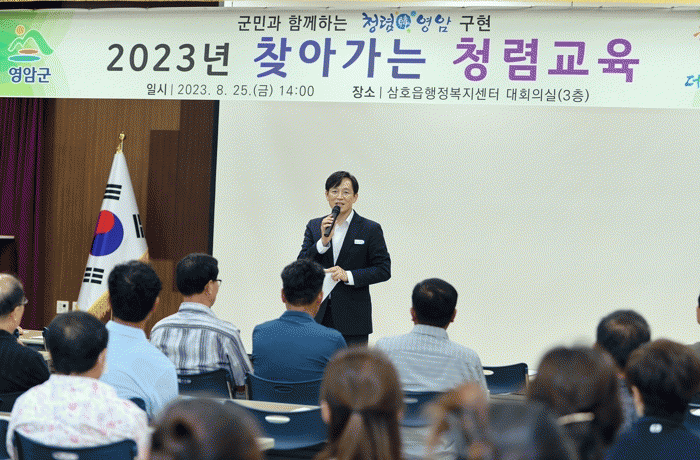 ‘찾아가는 청렴 교육’은 영암군의 청렴 의지를 민간까지 확대하는 것을 목표로 희망하는 단체에 방문해 10월까지 진행되고, 다음달에는 학산면과 미암면에서 개최될 예정이다.