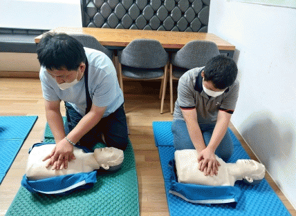 주요 내용은 심폐소생술, 자동심장충격기 사용법 등 응급상황 발생 시 즉시 시행해야 할 실습 위주의 교육으로 진행했다.