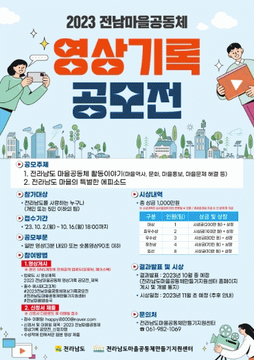 동영상 분야는 최우수상 1, 우수상 1, 장려상 2 총 4점을 선정하고 수상자에게는 전남도지사상과 총 250만 원의 상금(최우수 100만 원·우수 70만원·장려 각 40만 원)을 수여한다.