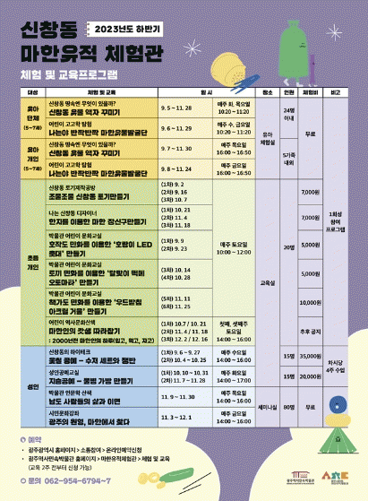 하반기 교육프로그램 수강료는 무료다. 단, 재료비는 수강생이 부담한다. 신청은 광주광역시 홈페이지 바로 예약에서 할 수 있다. 세부 일정 및 자세한 사항은 역사민속박물관 홈페이지, 신창동 마한유적체험관 블로그에서 확인할 수 있다.