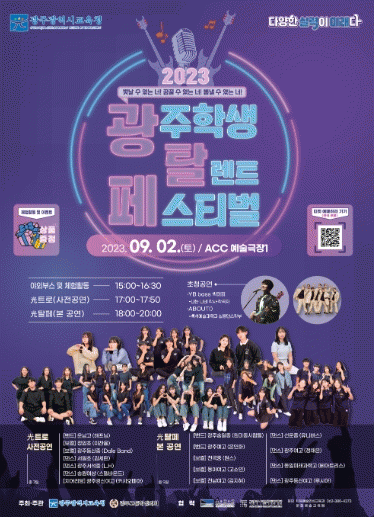 29일 시교육청에 따르면 ‘光탈페’는 학생의 다양한 끼와 재능을 마음껏 펼치고 즐길 수 있도록 기획된 프로그램이다. 이번 행사를 위해 지난 7월 초 참여를 원하는 학생들의 신청을 받아 지난 7월27~28일 양일간에 걸쳐 예선을 실시한 바 있다.