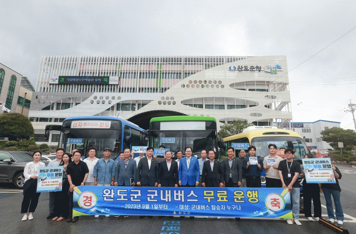 완도군의 군내버스 무료 운행은 군수 공약 사항으로 전남 최초(전국에서 두 번째)로 시행되어 타 지자체의 노인·청소년 버스 무료 승차와 차별화돼 눈길을 끌고 있다.
