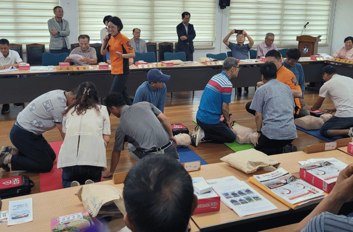 이에 따라 강진소방서, 의용소방대와 연계해 심폐소생술 및 자동심장충격기 사용법과 응급상황별 대처방법 등을 교육용 마네킹을 이용한 실습 위주로 교육을 진행한다.