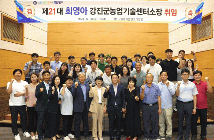 강진군농업기술센터는 이날 농업인 학습단체 회원, 품목별 농업인 연구회원, 소속직원 등 100여 명이 참석한 가운데 제21대 최영아 신임 소장 취임식을 가졌다.