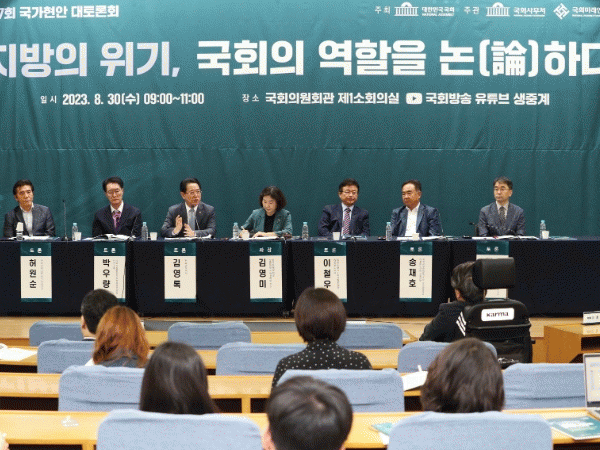 토론회에는 김진표 국회의장, 김교흥 국회행정안전위원장, 이상민 행정안전부장관, 우동기 지방시대위원장, 송재호 국회의원과 지방정부 대표로 김영록 전남지사와 이철우 경북지사, 각계 전문가들이 함께했다.