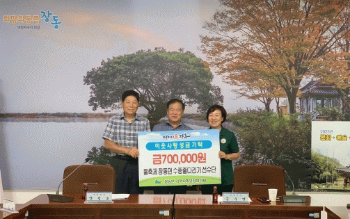 안성호 선수단 대표는 “상금 70만원은 면민들이 함께 단결하여 차지한 값진 성과이므로 장동면민이 하나 되고 서로 사랑하며 지켜주는 지역사회가 될 수 있도록 취약계층을 위해 써달라”며 상금을 기탁했다.