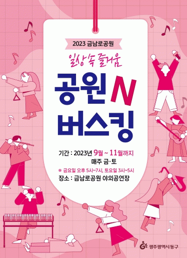 ‘공원N버스킹’은 일상 속 작은 여유 공간인 금남로공원에서 매주 주말마다(금 오후 5~7시·토 오후 3~5시) 눈과 귀를 사로잡는 다채로운 공연으로 버스킹의 매력을 시민들에게 선사할 예정이다.