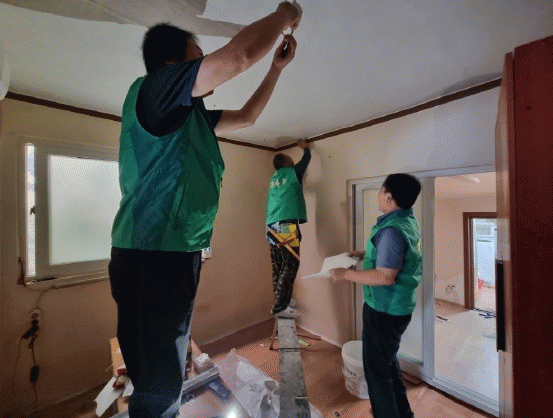 집수리 대상인 어르신 댁은 노후된 주택으로 최근 집중호우로 인한 누수로 장판과 벽지에 곰팡이가 핀데다 생활 찌든 때까지 더해 오염이 심각한 상황이었다. 이에 협의회 위원들은 장판과 벽지를 새로 교체하고, 방충망과 낡은 전등을 고치는 등 집수리를 진행했다.