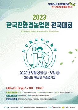 한국친환경농업인 전국대회는 (사)한국친환경농업협회와 친환경농산물자조금관리위원회가 주관하여 추진하는 대회로 시도별 격년제로 개최되며, 올해에는 개최 시군 공모를 거쳐 해남이 선정됐다.