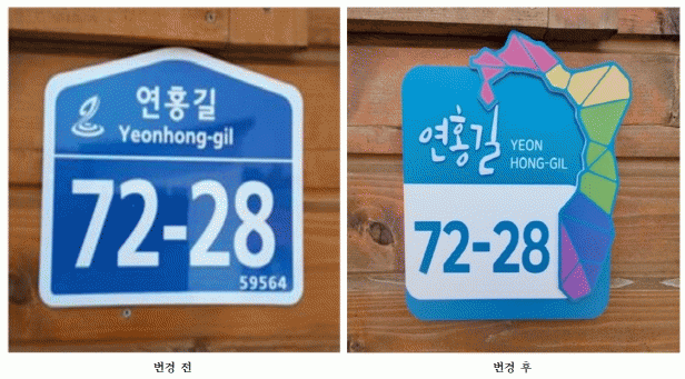 이번에 연홍길 74개소에 설치된 건물번호판은 연홍도의 예술의 섬이라는 정체성과 특징을 반영해 주변 환경과 어울리도록 디자인했으며, 푸른 바다 위 섬의 지형을 전체적으로 컬러풀한 색으로 형상화했다.