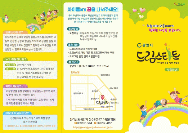 이번 전수조사는 광양시에 거주하는 만 12세 이하 기초수급자, 차상위, 법정 한부모가정 등 취약계층 아동 140여 명을 대상으로 하며 각 가정에 드림스타트 안내문을 발송하고 가정방문 할 예정이다.